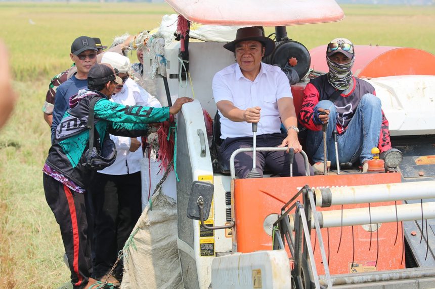 Serang (parlemenbanten.com) – Penjabat (Pj) Gubernur Banten Al Muktabar melakukan gerakan panen raya padi Kelompok Tani (Poktan) Talang Tani seluas 31 hektar di Kampung Cijablog, Desa Cerukcuk Kecamatan Tanara, Kabupaten Serang, Minggu (17/9/2023).