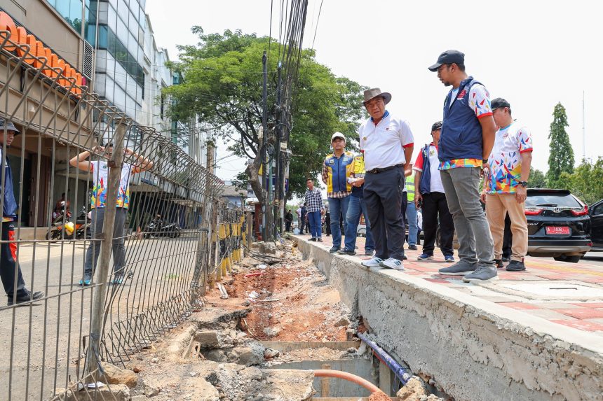 Sebagai informasi, ada dua titik rehabilitasi drainase di Jl. MH Thamrin, Cikokol, Kota Tangerang. Meliputi pelebaran saluran drainase dan pekerjaan pedestrian di atasnya dengan paving block. Bulan Desember 2023, Rehabilitasi ditargetkan sudah tuntas. (Humas)