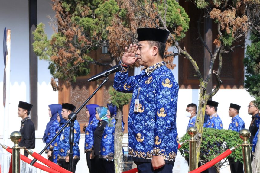 Turut hadir pada Upacara Hari Bela Negara ke-75 yang dirangkaikan dengan Hari Kesadaran Nasional tingkat Kabupaten Serang Tahun 2023, para kepala OPD dan pegawai di lingkungan Pemkab Serang. (Red/Aldo)