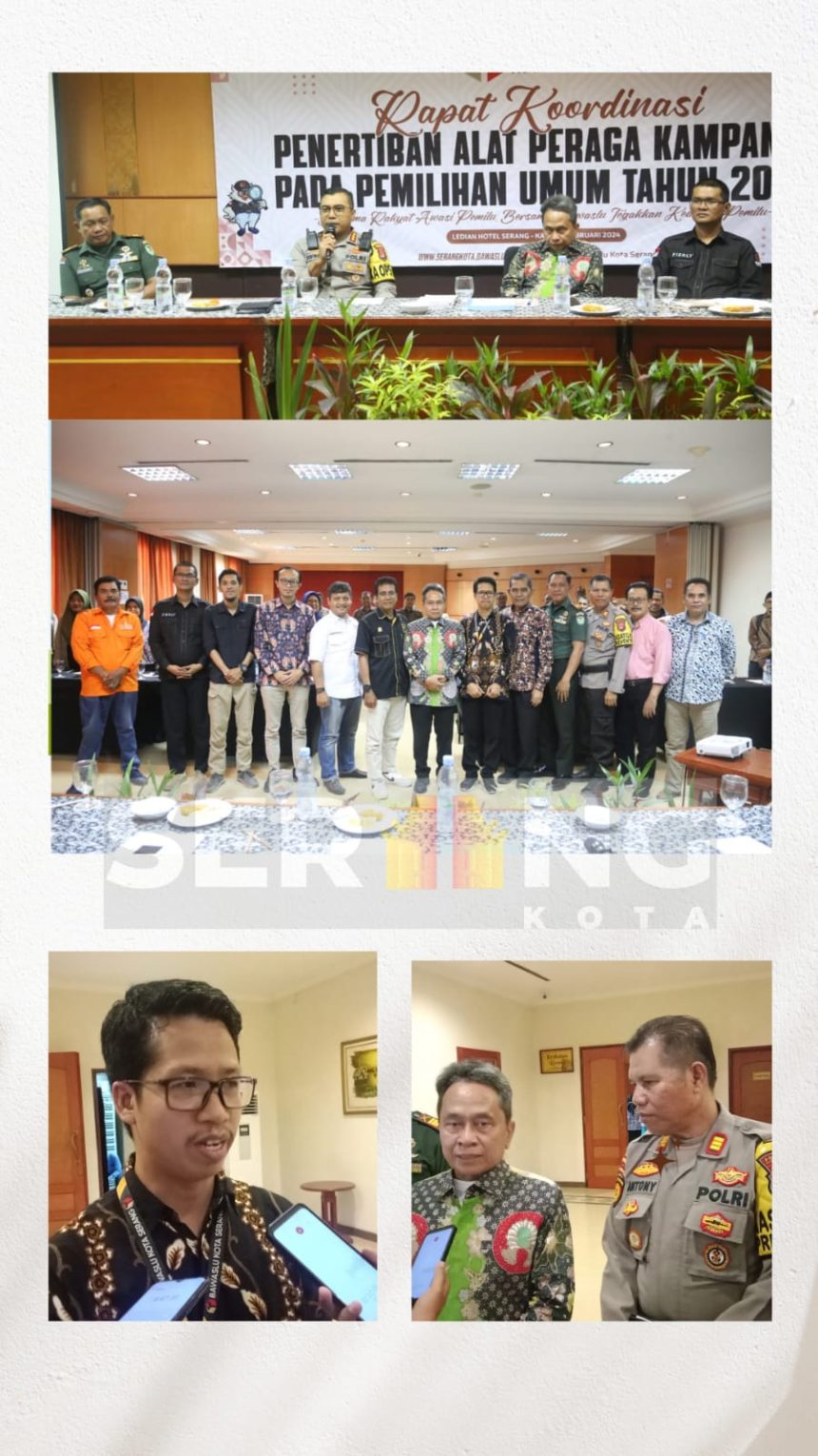 Serang (parlemenbanten.com) – Hotel Le Dian, Kamis 8 Februari 2024 diadakan Rakor penertiban alat peraga kampanye pada Pemilu tahun 2024 di wilayah Kota Serang. Turut hadir Pj Walikota Serang Yedi Rahmat, Kapolresta Serang Kota Kombes Sofwan Hermanto, Dandim yang diwakili Danramil Edi Purnomo, Ketua Bawaslu Agus Aan Hermawan beserta jajarannya, Ketua KPU Kota Serang Nanas Nasihudin beserta jajarannya, Staf Ahli Walikota Alpedi, Kepala Kesbangpol Wasis, Kasat Pol PP , Perwakilan Partai-partai peserta Pemilu, dan Panwaslu Kecamatan se-Kota Serang.