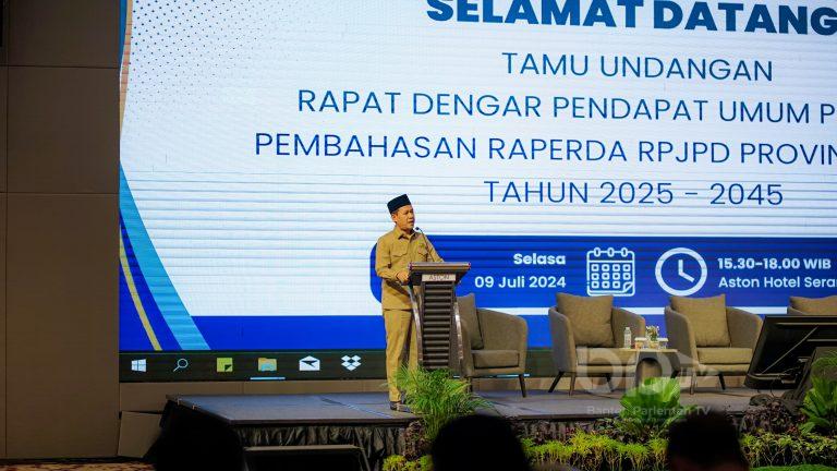 RDPU ini digelar dalam rangka penyempurnaan Rancangan Peraturan Daerah tentang Rencana Pembangunan Jangka Panjang Daerah (RPJPD) Provinsi Banten Tahun 2025-2045 dengan Visi Pembangunan yakni Sebagai Gerbang Investasi Strategis yang Maju, Sejahtera, dan Berkelanjutan Berlandaskan Iman dan Taqwa.
