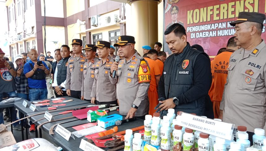 Serang (parlemenbanten.com) – Sebanyak 16 pelaku kejahatan berhasil diringkus personil Satreskrim Polres Serang dan Polsek jajaran dalam Operasi Pekat Maung yang digelar selama 10 hari mulai 5 hingga 14 Juli 2024