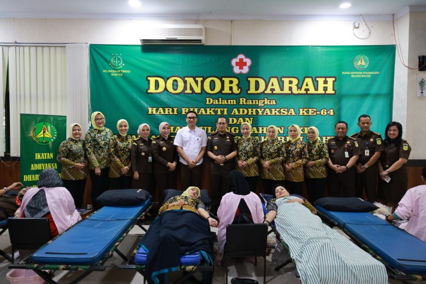 Serang (parlemenbanten.com) – Kejaksaan Tinggi Banten menyelenggarakan kegiatan Donor Darah, Bakti Sosial, dan Anjangsana dalam rangka memperingati Hari Bhakti Adhyaksa (HBA) ke-64. Tema yang diusung tahun ini adalah “Akselerasi Kejaksaan Untuk Mewujudkan Penegakan Hukum Modern Menuju Indonesia Emas” pada Rabu, (17/7/24).
