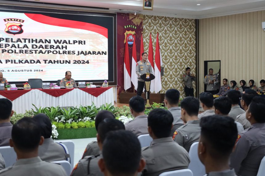 Serang (parlemenbanten.com) – Polda Banten gelar Pembukaan Pelatihan Walpri Calon Kepala Daerah Polda Banten dan Polresta Jajaran Dalam Rangka Pilkada 2024 bertempat di aula Serbaguna Polda Banten pada Senin (05/08).