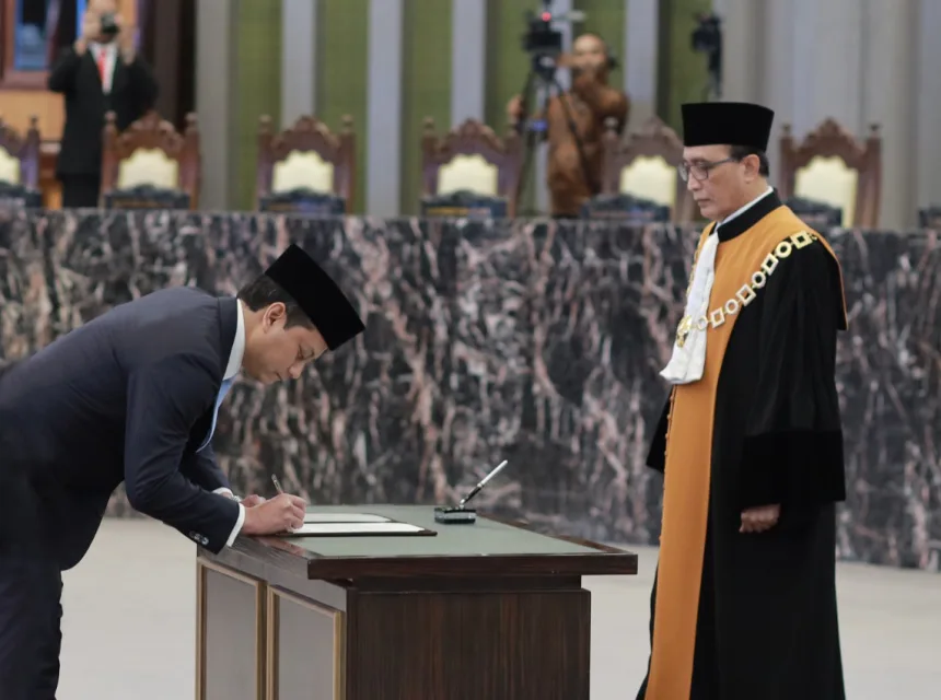 Jakarta (parlemenbanten.com) Wakil Menteri Keuangan Thomas A.M. Djiwandono dilantik sebagai Anggota Dewan Komisioner OJK Ex-officio Kemenkeu. Pengucapan sumpah jabatan Thomas dilakukan di hadapan Ketua Mahkamah Agung RI Sunarto di Gedung MA Jakarta, (Kamis.6 Februari 2025)