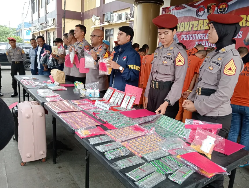 “Kelima tersangka ini merupakan satu jaringan pengedar sabu yang ditangkap di sejumlah lokasi dan atas informasi yang didapat secara berantai dari para tersangka,” kata Condro Sasongko didampingi Wakapolres Kompol Fauzan Afifi, Kasatreskoba AKP Bondan Rahadiansyah dan Kasihumas AKP Dedi Jumhaedi.