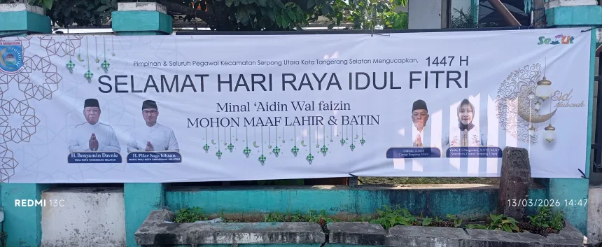 SERPONG UTARA, 15 Maret 2026 – Memasuki momentum hari kemenangan, Pimpinan beserta seluruh pegawai Kecamatan Serpong Utara, Kota Tangerang Selatan, menyampaikan ucapan Selamat Hari Raya Idul Fitri 1447 H kepada seluruh masyarakat.