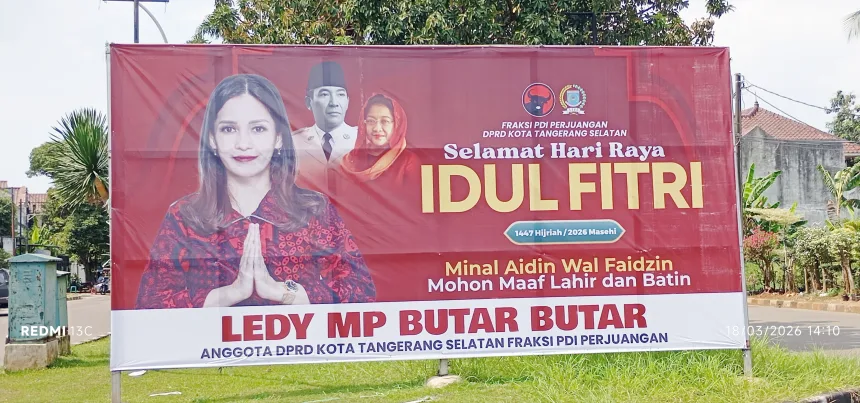 Baliho tersebut dipasang oleh Ledy MP Butar-Butar, SE, Anggota Fraksi PDI Perjuangan sekaligus Ketua Komisi I DPRD Kota Tangerang Selatan.
