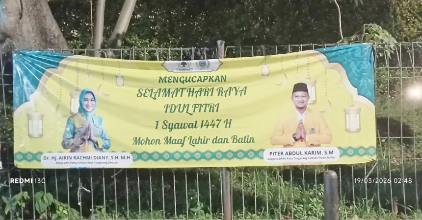 Berdasarkan pantauan tim parlemenbanten.com pada Rabu malam (18/03/2026), spanduk-spanduk ucapan Idul Fitri dari Anggota DPRD Kota Tangsel tersebut telah terpasang di berbagai titik strategis dan padat penduduk.