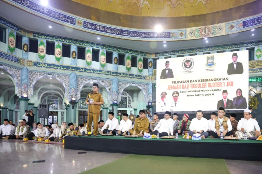 Ia secara resmi melepas 393 jemaah haji kloter 01-JKB Kota Tangerang di Masjid Raya Al-A’zhom, Kota Tangerang, Selasa (21/4/2026) malam, yang menjadi pemberangkatan perdana melalui Asrama Haji Cipondoh, bukan lagi Pondok Gede.