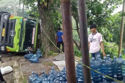 Akibat Sopir Mengantuk,Truk Bermuatan Galon Alami Kecelakaan Di Pandeglang
